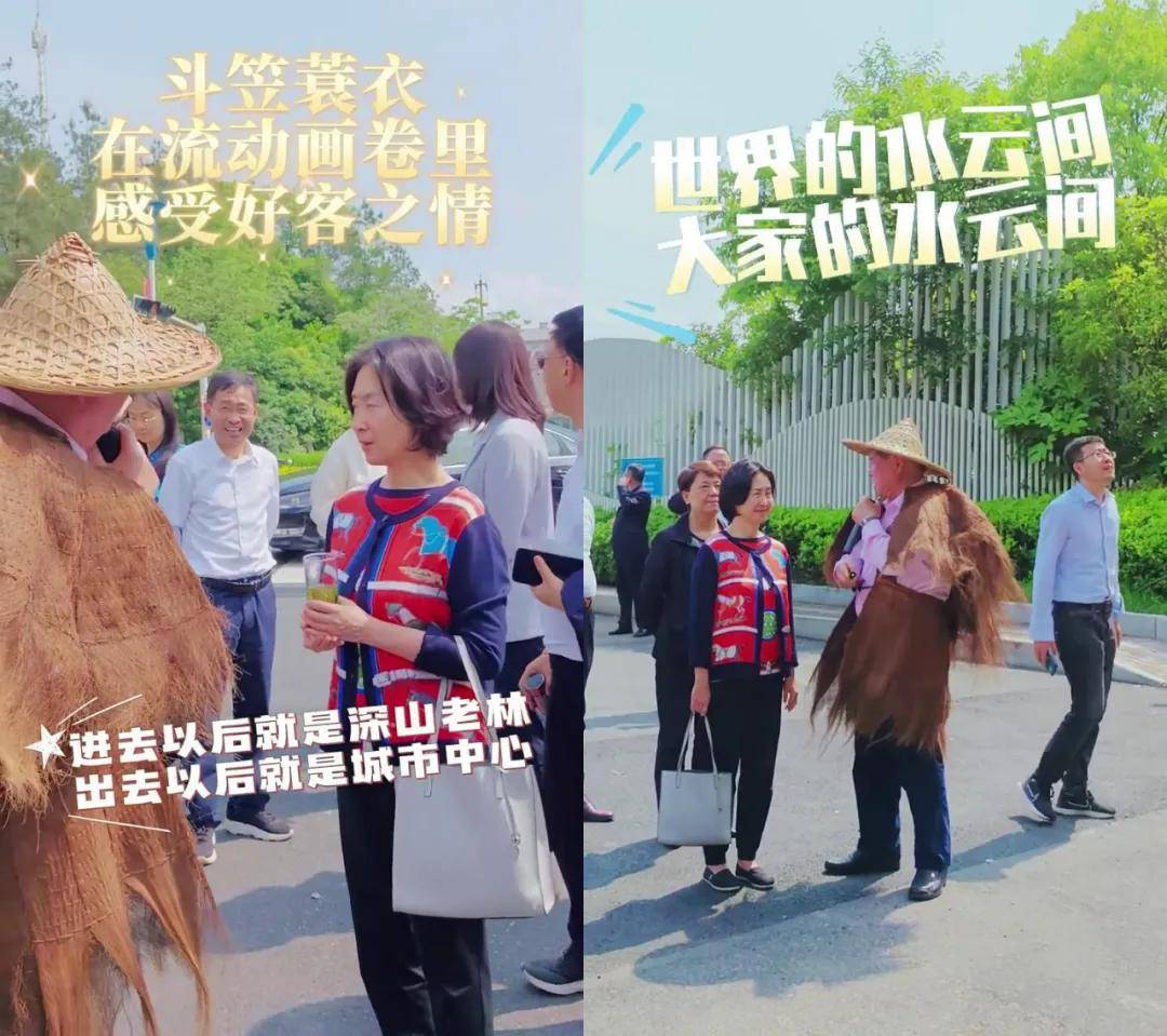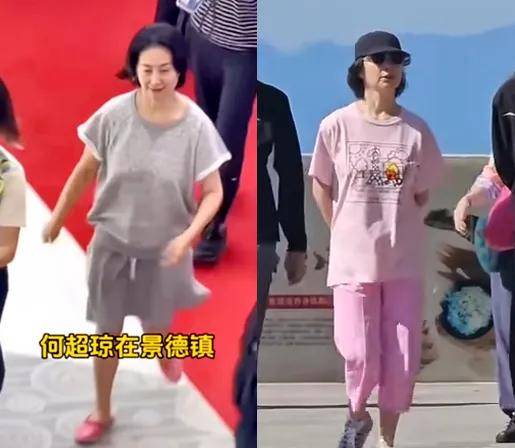 之前去参观景德镇,宽松短裙配粉色拖鞋,怎么舒服怎么来;在上饶葛仙村,干脆套上粉色大背心,亲身展示什么叫老板穿休闲。