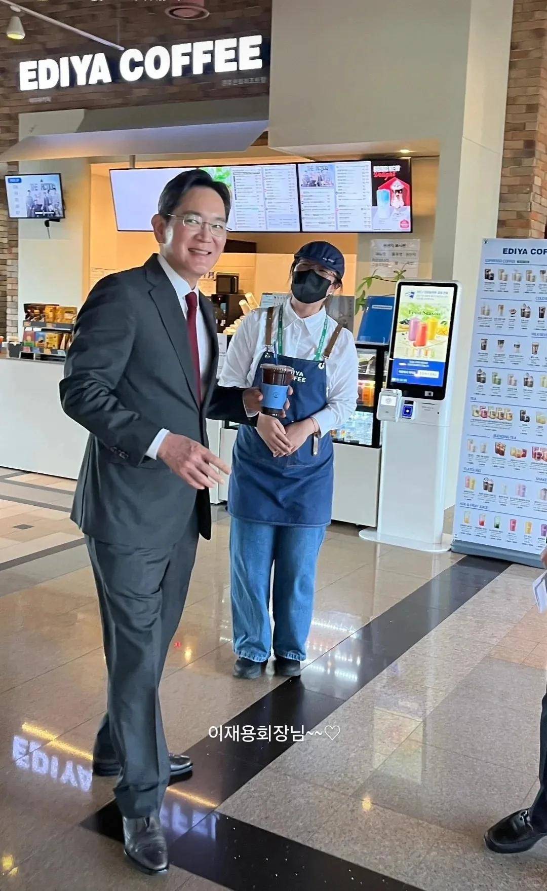 除了吃饭,李在镕最近还解锁了韩国最大连锁咖啡店之一的Ediya Coffee,还给了店员约260元的小费,感觉都是跟黄仁勋学的~