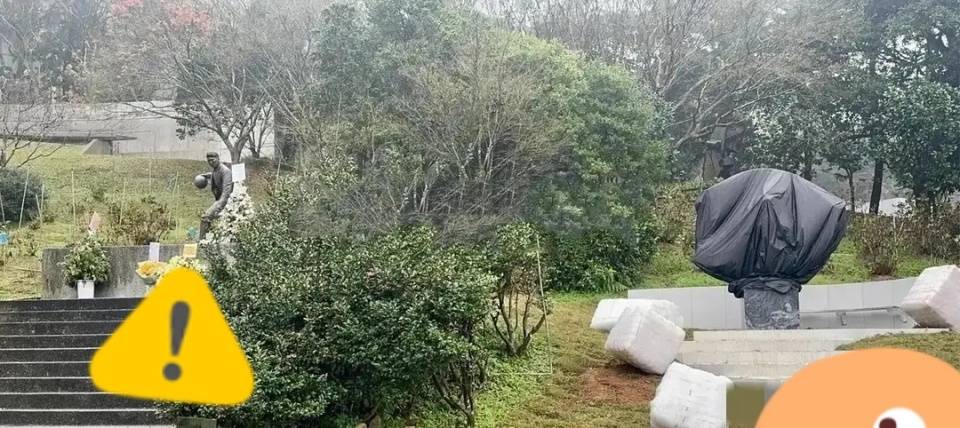 在台媒拍摄的照片中,虽然大S雕像的真容还没有完全曝光,被黑色包装物罩得严严实实的,但从远处看,就能见其规模大小,超过了同墓园里的高以翔等名人明星的雕像。