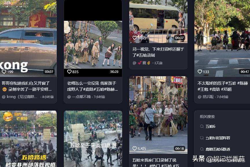 这次五哈录制的阵仗特别大,估计是有一趴野人主题的游戏。