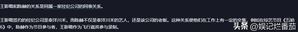 让人很疑惑这人咋能上五哈的,结果一搜才知道,王影璐居然是陈赫公司新签的艺人。