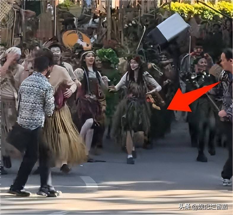 而邓超的野人造型就很普通了,肩膀上挂了一圈的叶子围脖,