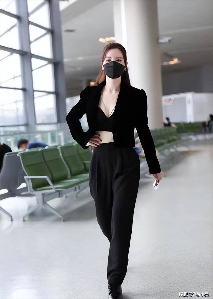 短款西装外套里边直接穿了一件内衣,颜色皆为黑色,瞬间就把部分腰部肌肤暴露出来,性感气息轻松拿捏。高腰阔腿裤没人不爱,好的垂坠感衬得穿着者更干练利落。