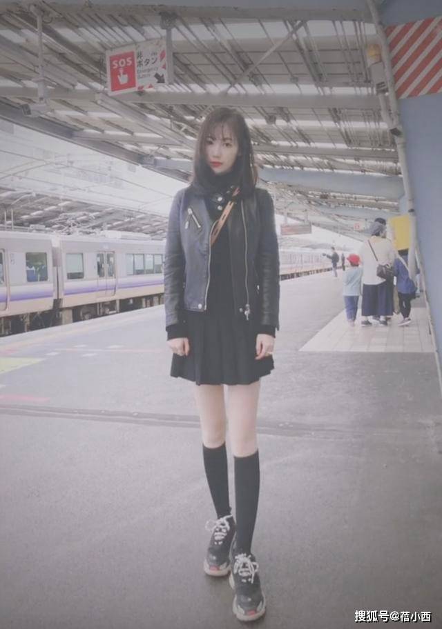 这张照片里,马蓉身着黑色皮衣+黑色百褶短裙,搭配黑色长筒袜与厚底运动鞋,一身黑的搭配看起来简单,却完美平衡了酷感与少女感,是她“越活越年轻”的穿搭示范。