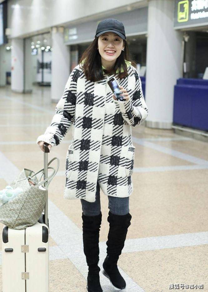 马蓉这套机场私服更是将休闲与精致平衡得恰到好处,黑白格纹大衣搭配过膝靴,保暖又显气质,整体造型以黑白格纹为主色调,经典的格纹元素自带复古韵味,白色底色搭配黑色格纹,清爽又耐看,打破了冬季穿搭的沉闷感,再加上黑色棒球帽修饰,时尚感直接拉满。