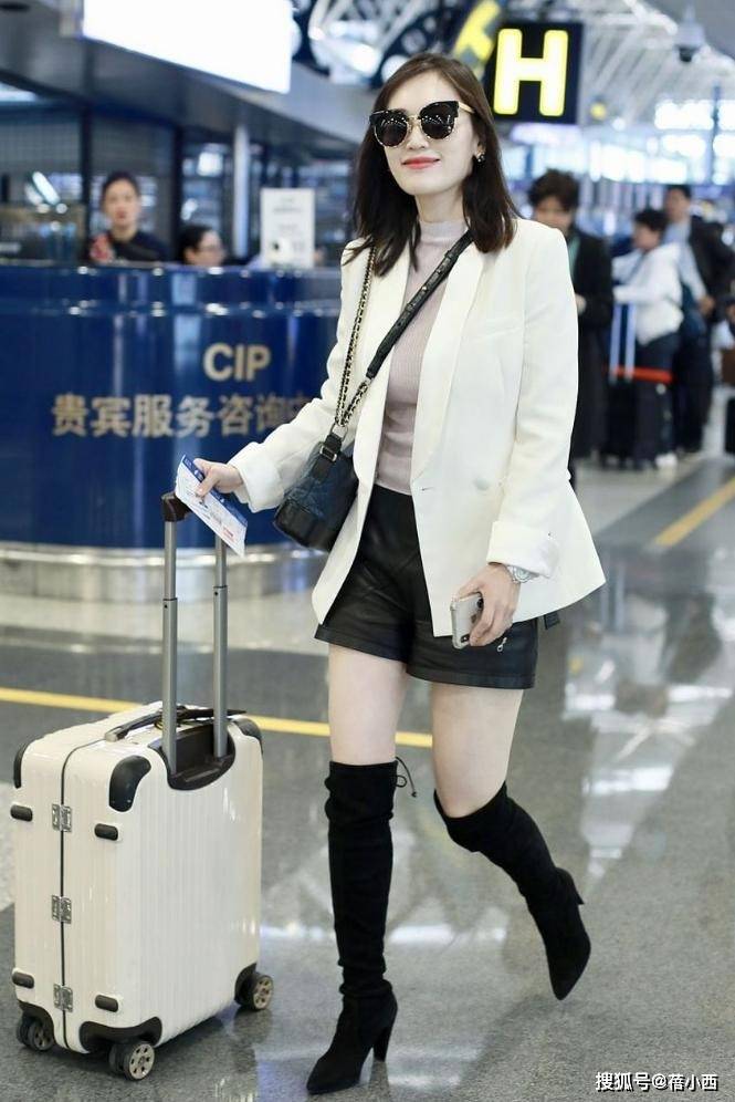 搭配黑色的短裤,是这套造型的“点睛之笔”。西装的正式感与短裤的休闲感碰撞,打破了传统西装的沉闷,更显年轻活力,而马蓉的“豆腐腿”纤细笔直、皮肤白皙,短裤刚好露出腿部最纤细的部分,视觉上拉长身形,让整个人看起来轻盈又显瘦,完全看不出岁月痕迹。