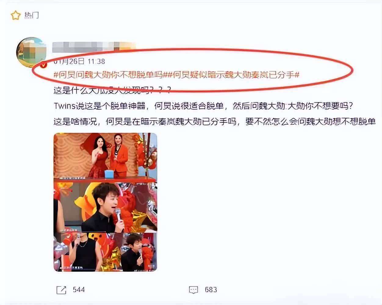 就是这一句看似普通的话,在粉丝和网友的解读下,却成了暗示魏大勋与秦岚分手的信号。这么简单的一句话,竟然引发了极大的轰动,原因正是魏大勋与秦岚那段长达四年的恋情——虽然两人一直没有正式公开,但外界已经普遍认定他们是情侣。