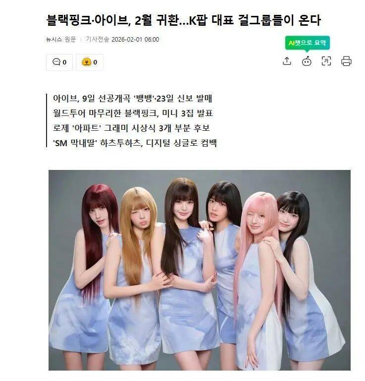 据2月1日韩国媒体最新报道,二月的全球音乐市场,预计将被一股来自韩流的强势风暴点燃。以BLACKPINK、IVE为代表的多支顶级女团集体宣布回归,而新人团体Hearts to Hearts也蓄势待发,一场激烈的“女团大战”已拉开序幕。与此同时,上周刚刚发歌的(G)I-DLE和KISS OF LIFE正持续霸占音源榜单,为这场开年盛宴预热升温。