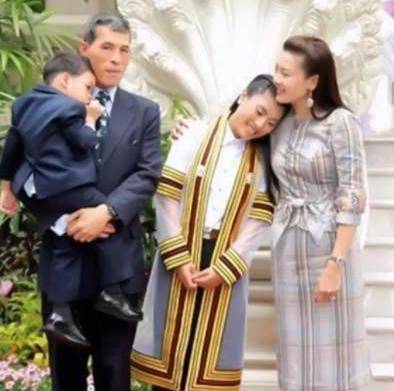 他的第一任妻子,如今依然在王室中拥有皇家头衔,名为颂妃,她的女儿帕公主便是她的亲生女儿。第二任妻子是育瓦媞达,她生下了小公主思蕊梵,而第三任妻子,大家应该比较熟悉,那就是现任泰王的唯一儿子——15岁的提帮功王子之母,蒙西拉米。