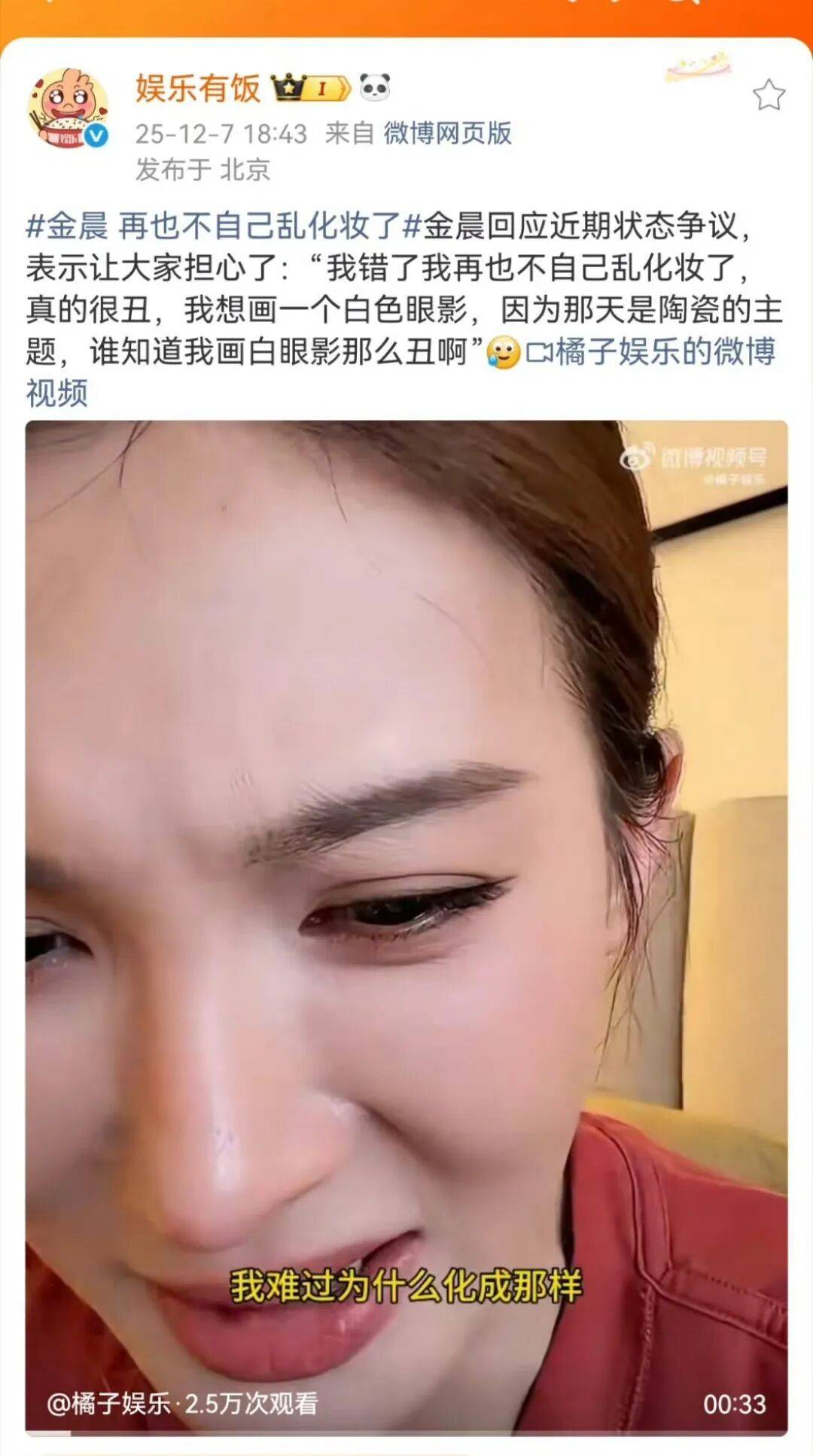 又或者是自创的“暗黑碎钻妆”遭全网群嘲后,第一时间开直播直面争议,凑近镜头诚恳自省“我错了,白眼影化得真丑,再也不乱化妆了”。