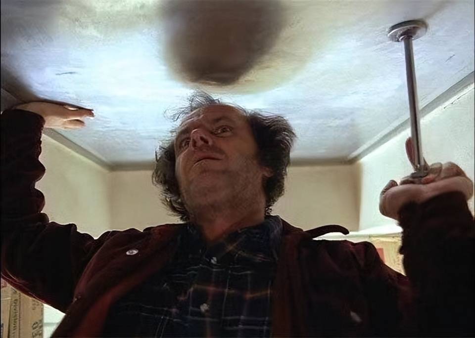 与原著强调酗酒与家庭暴力不同,库布里克弱化现实诱因,将焦点转向封闭环境对人性的异化。杰克的疯狂并非突如其来,而是从一开始就潜藏癫狂底色,使整部电影成为一场关于精神崩溃的缓慢侵蚀。