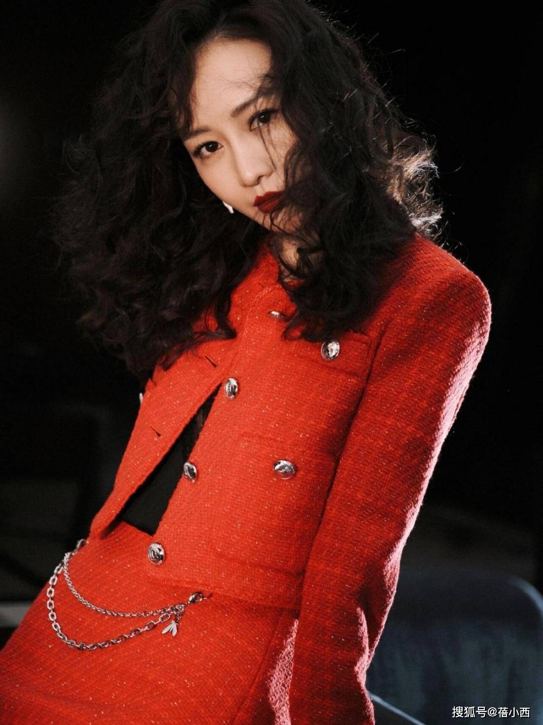 短裙与小开衫是套装,最吸人眼球的是半裙加入了链条设计,让优雅的氛围中多了些许接头感。裙子短的话,难免会影响一些行为,不想当淑女都难啊。这身红色穿搭挺适合春天,光腿神器该用则用。