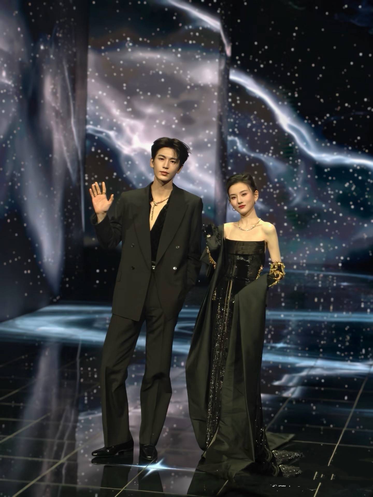 张凌赫宋祖儿,两人同穿黑衣,只不过看起来俩人不是很搭。