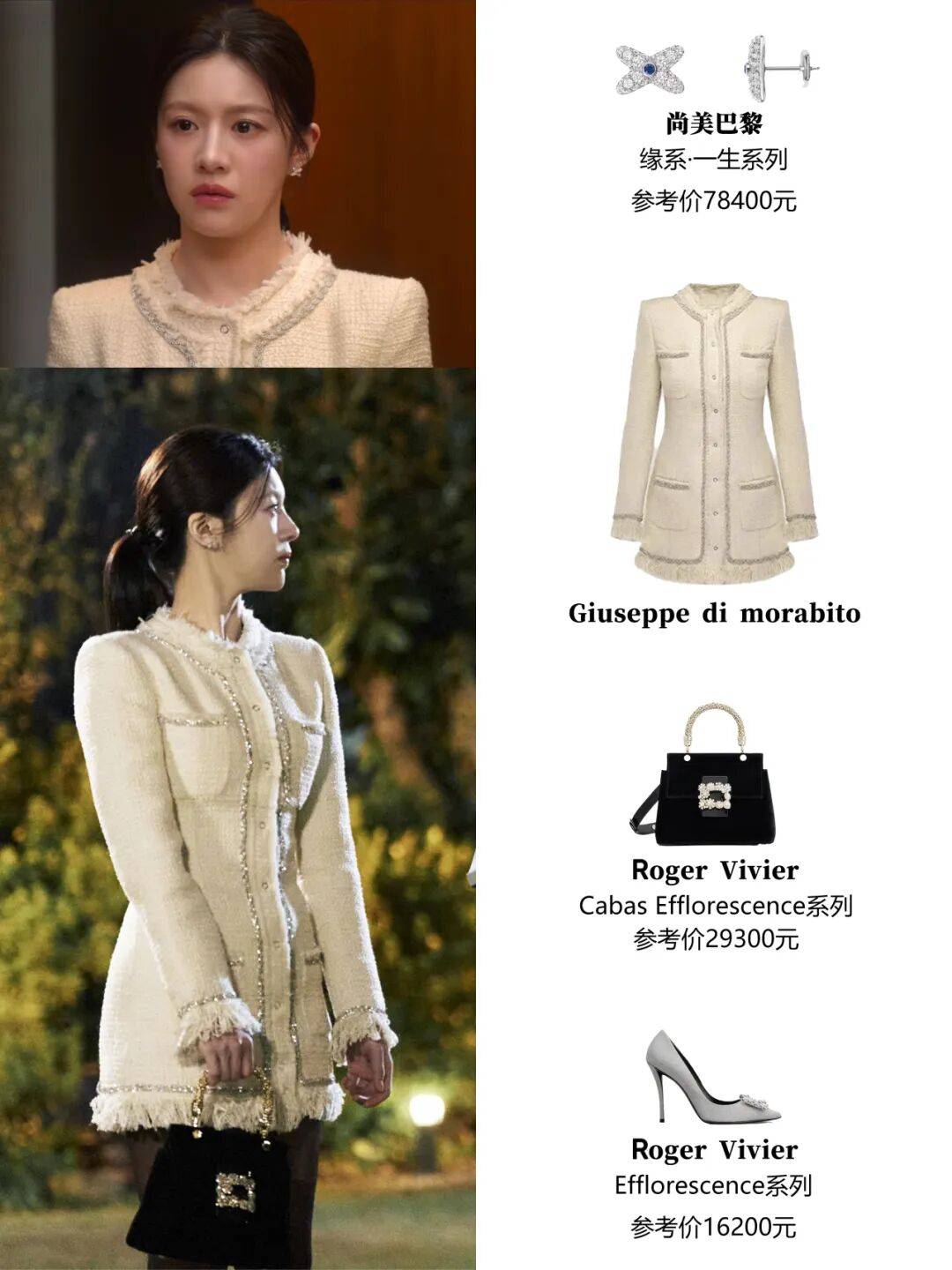 女主在剧中穿了好多粗花呢单品,一方面是韩剧造型师很喜欢给比较贵气的人设这样穿,另一方面高允真本人也和Chanel有合作关系。