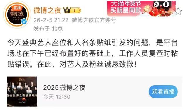 大型活动的主办方需要在众多艺人及其团队间进行微妙平衡。尽管常以“工作失误”解释座位争议,但“粘贴错误”的解释在2025微博之夜后被广泛质疑缺乏说服力。