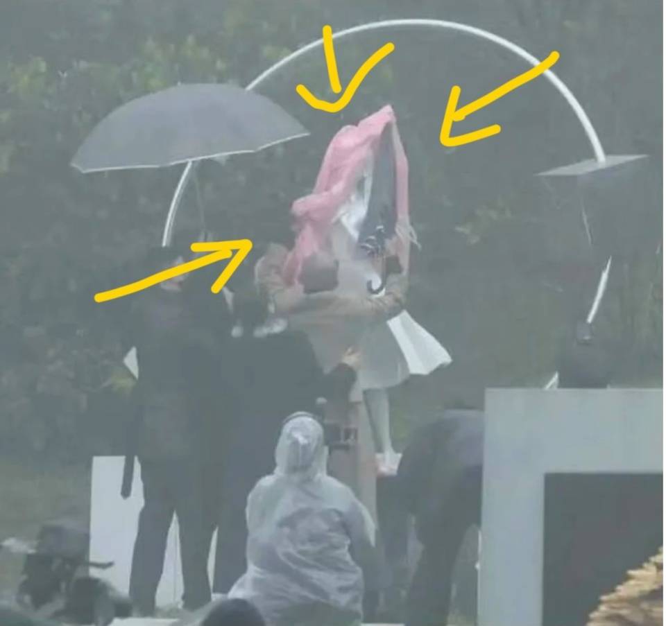 可在雕像揭幕的时候,却拿一把伞尖去狠狠戳大S雕像的盖头。