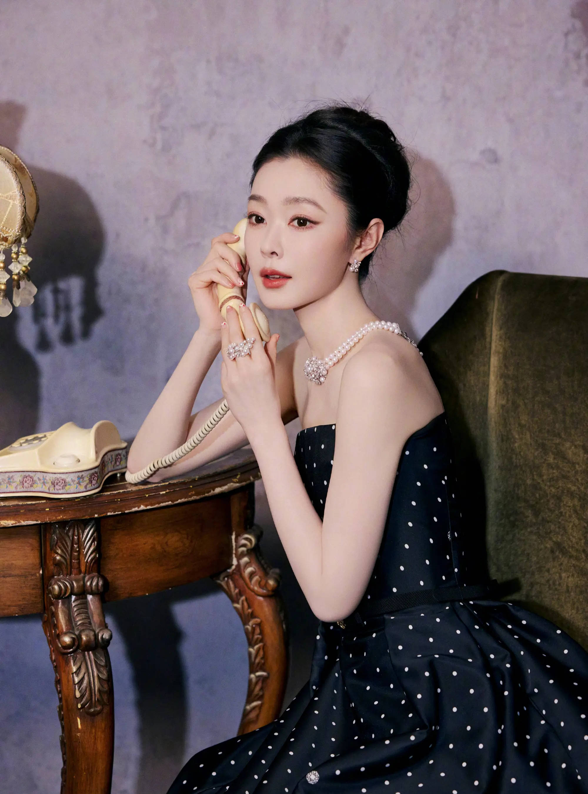 宋轶身穿复古波点裙气质优雅迷人。