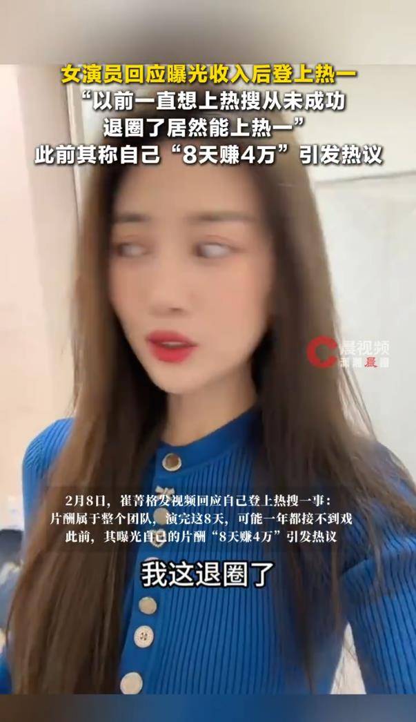 折算下来,为这8天戏份,她前后待命了三个月,实际月收入仅约4000元。这与其“日薪五千”带来的想象,形成了刺眼反差。也难怪她在退圈视频中感慨:“赚的是少数,熬的是多数。”