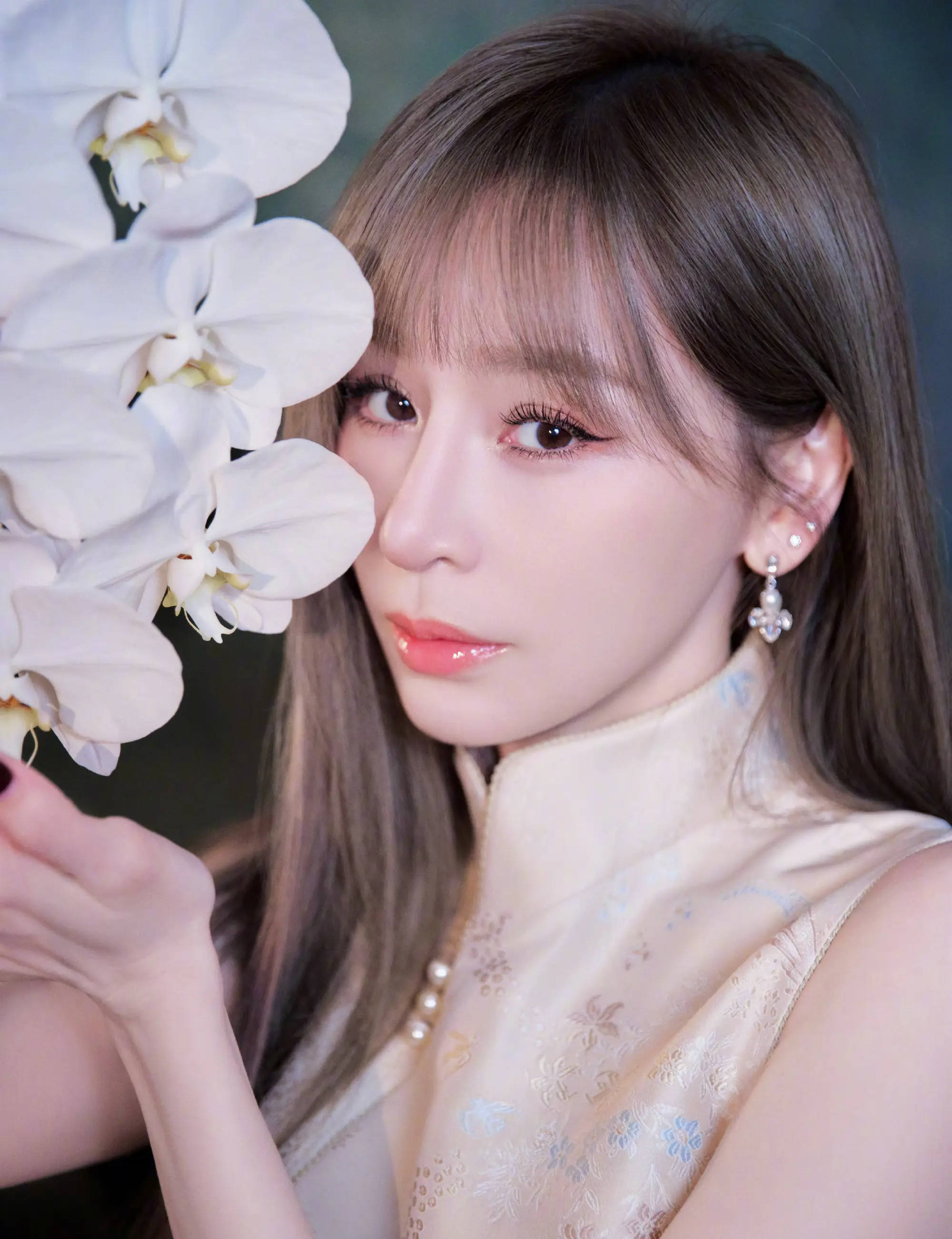 王心凌捧起白蝴蝶兰,灵动娇俏。