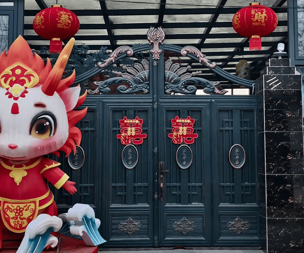 早在前些天,朱之文就开始准备各种东西,包括气拱门、喜联等等,相关的工作也在昨晚弄完。一大早,朱之文便开始打理,还亲自放炮,弄红毯。