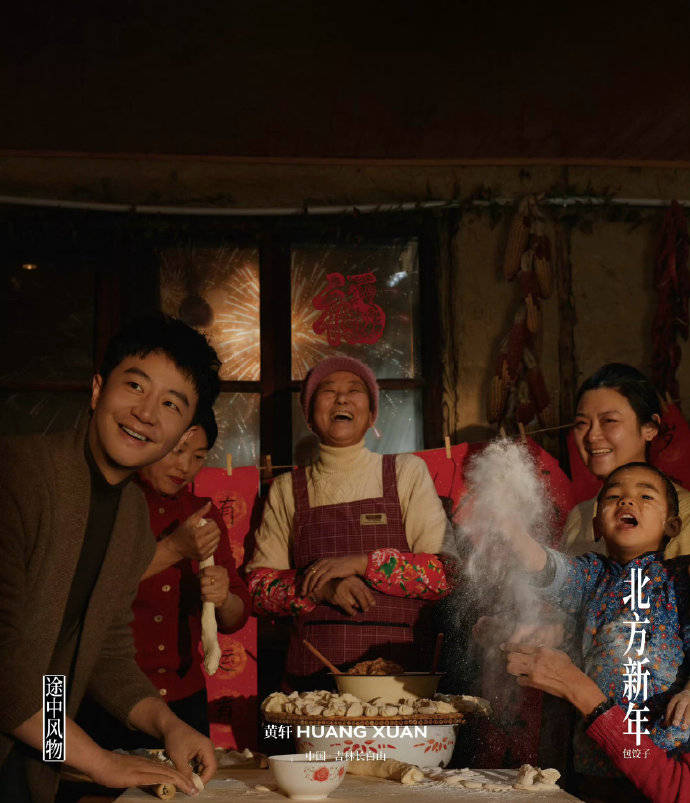 2026年2月,黄轩受《上城士》杂志邀请,赴吉林长白山拍摄以“北方新年”为主题的二月刊封面。原计划因暴风雪受阻,团队临时深入当地木屋村取景,意外捕捉到贴春联、包饺子、准备年夜饭等真实年俗场景。