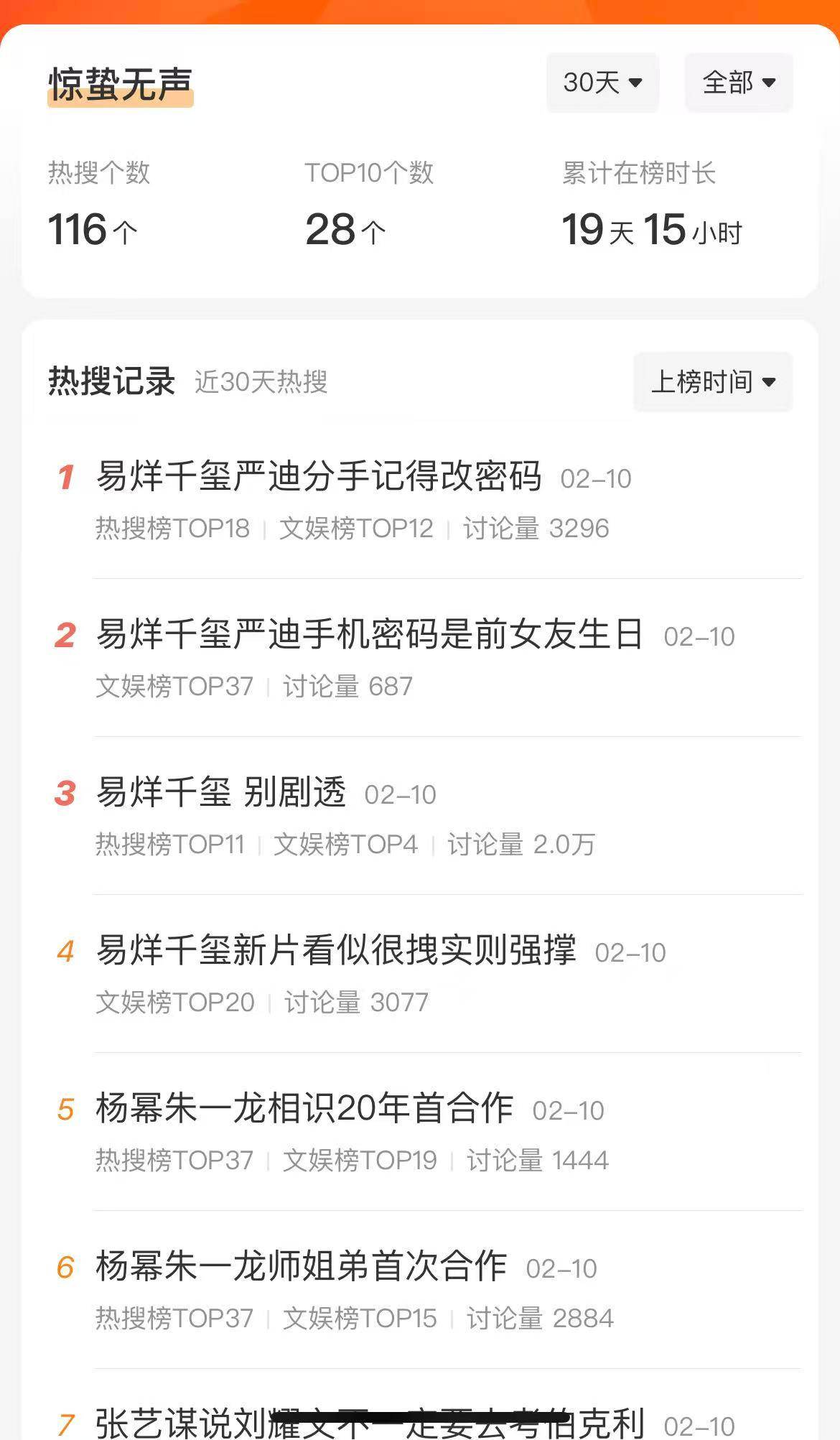 你看,这才是预售第一天,猫眼登记的想看人数早早飙破30万,仅热搜就登了100多次,TOP 10的热搜更是多达28个。