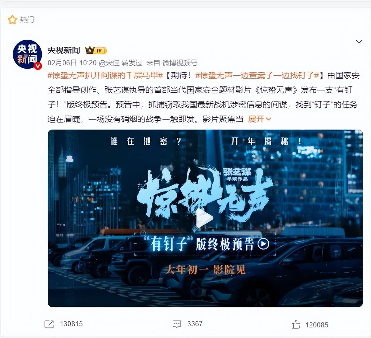 新颖备受瞩目的现代谍战题材,国家安全部门亲自下场指导,主创阵容星光熠熠,这样的《惊蛰无声》可以说是春节档最为抢眼的存在了。