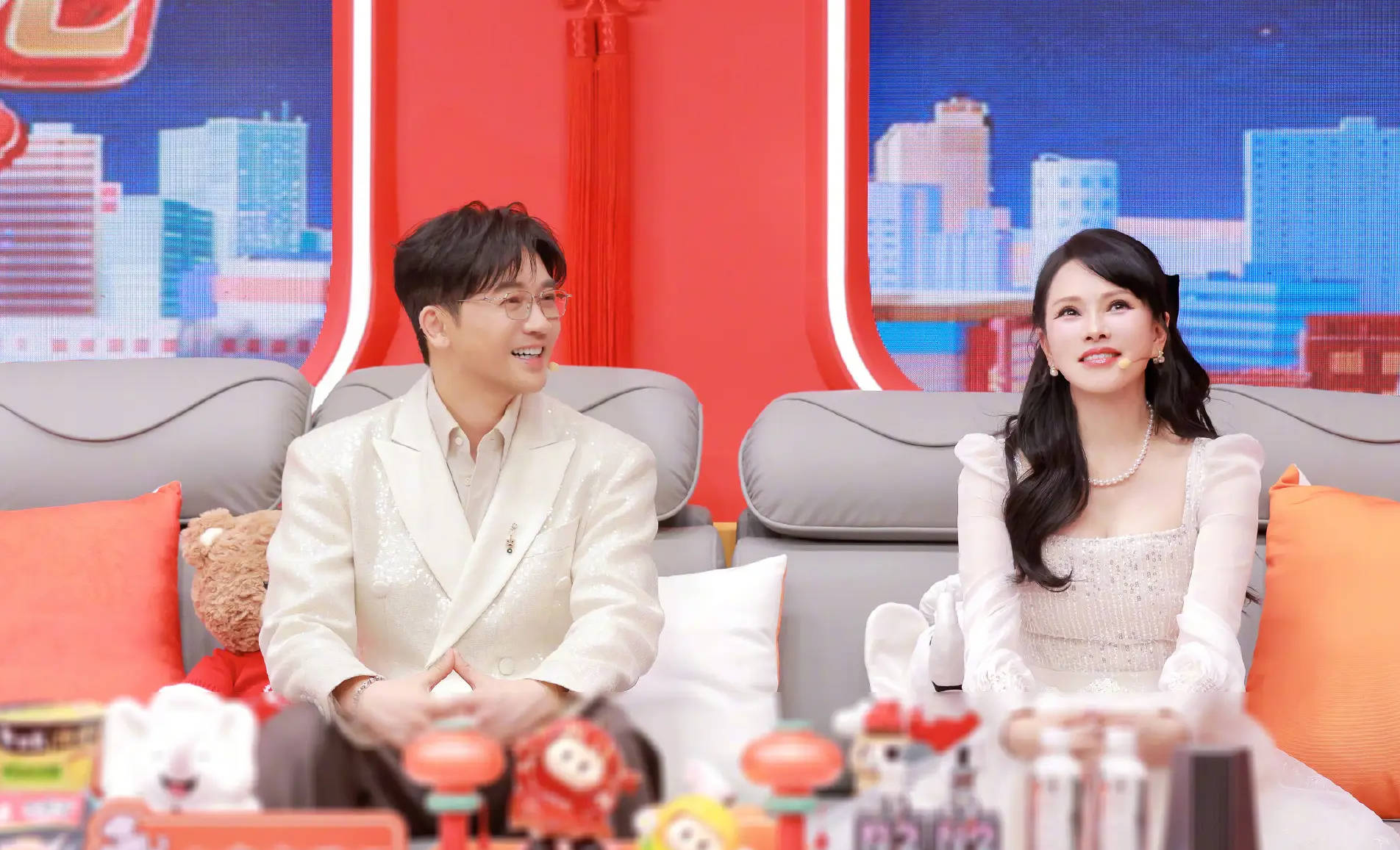 苏有朋与伊能静开心聊天。