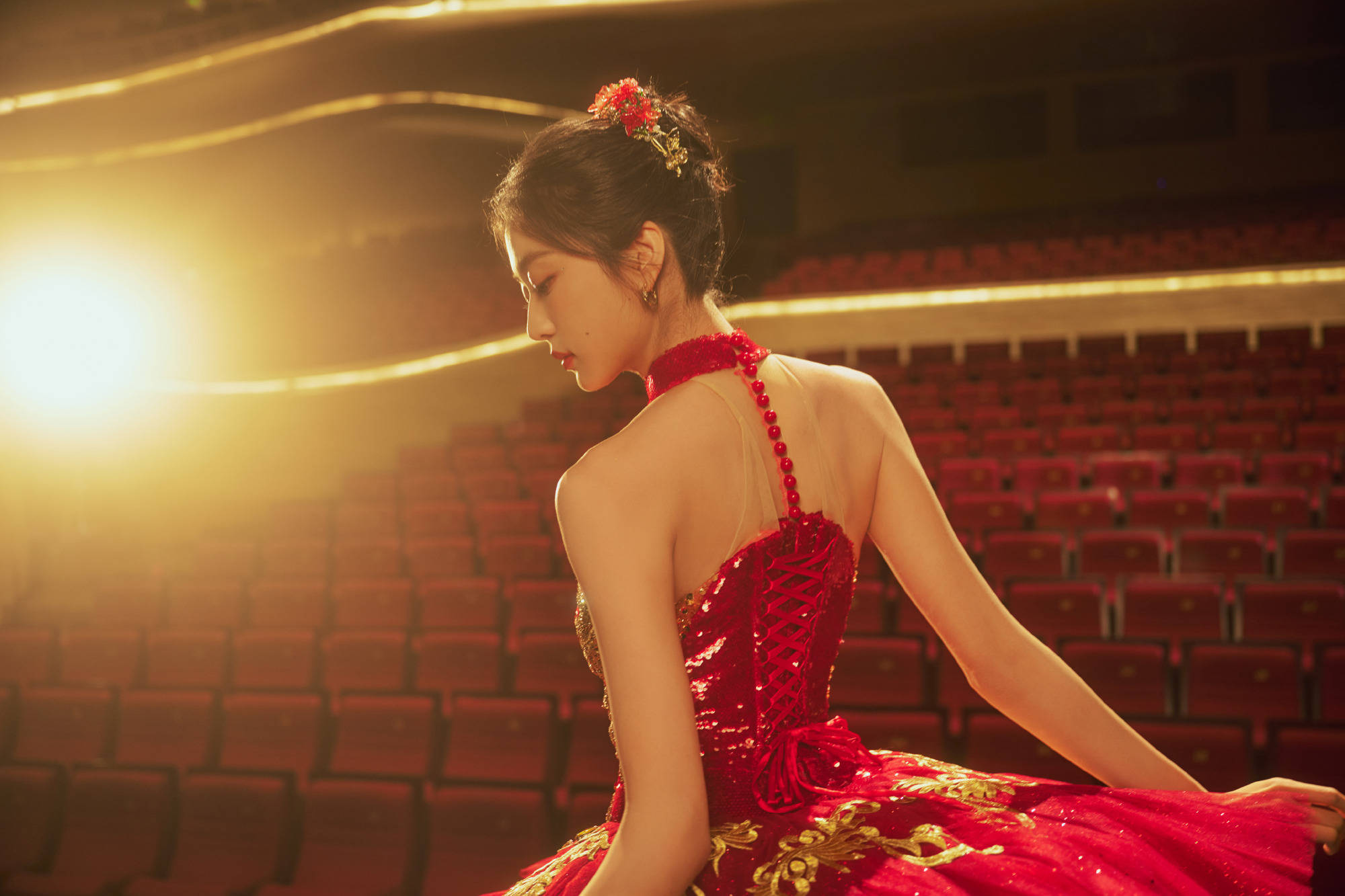 孙千双臂高举,裙摆如焰,绽放独舞光芒。