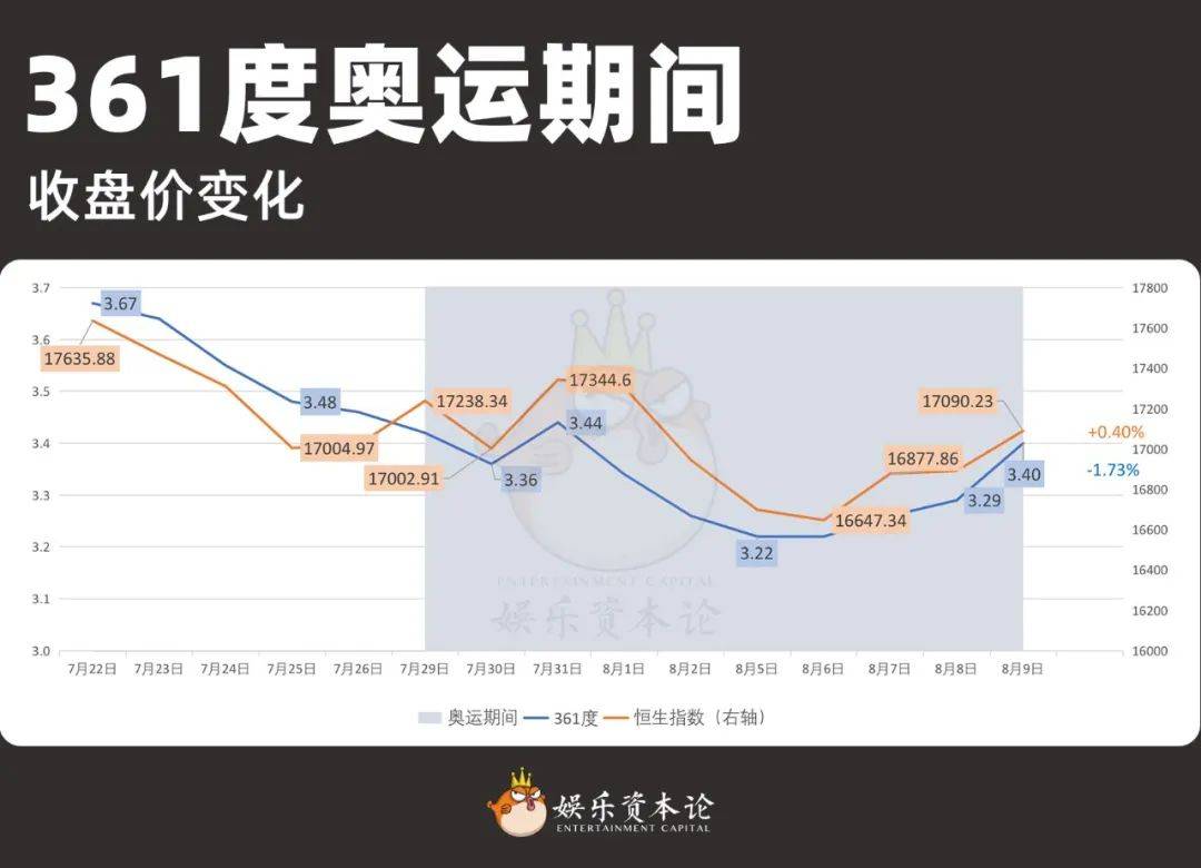 相比之下,曾高调赞助2016里约奥运会的361度在今年几乎看不到一点水花。而其股价走势与大盘吻合,表明体育板块内部尚未形成联动效应,全民运动的风口向全民体育消费的转化逻辑仍需时间才能跑通。