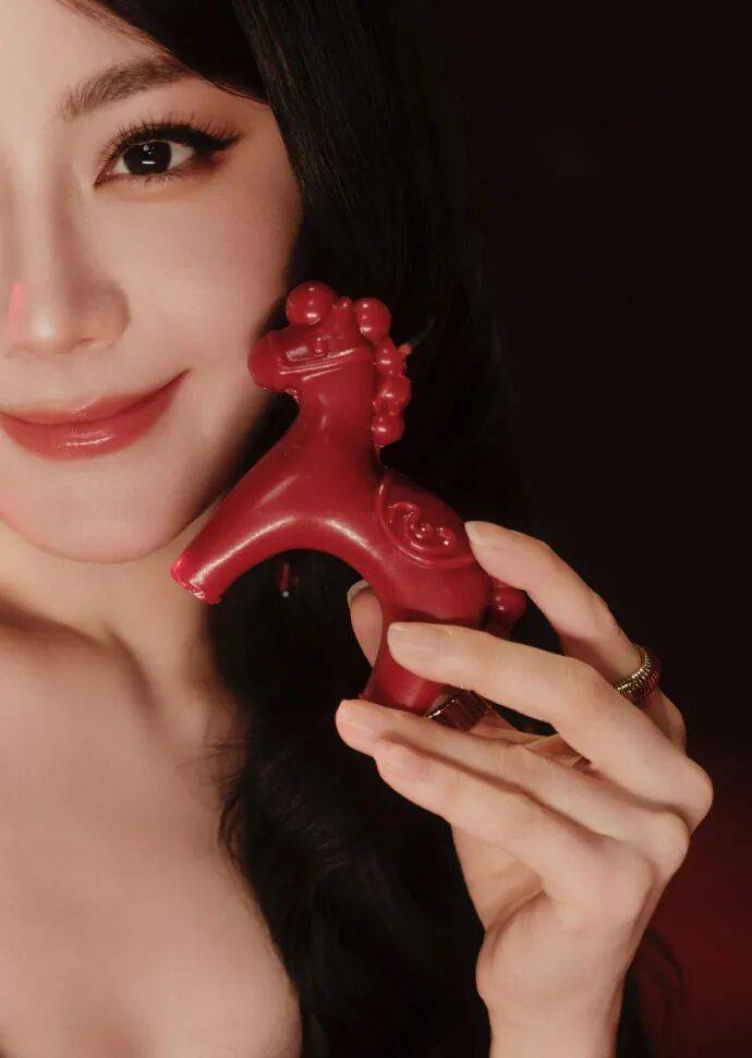 大年初一,迪丽热巴再度发红衣写真,她身穿高开叉红裙,她手中的红色小马,象征“鸿运当头”!