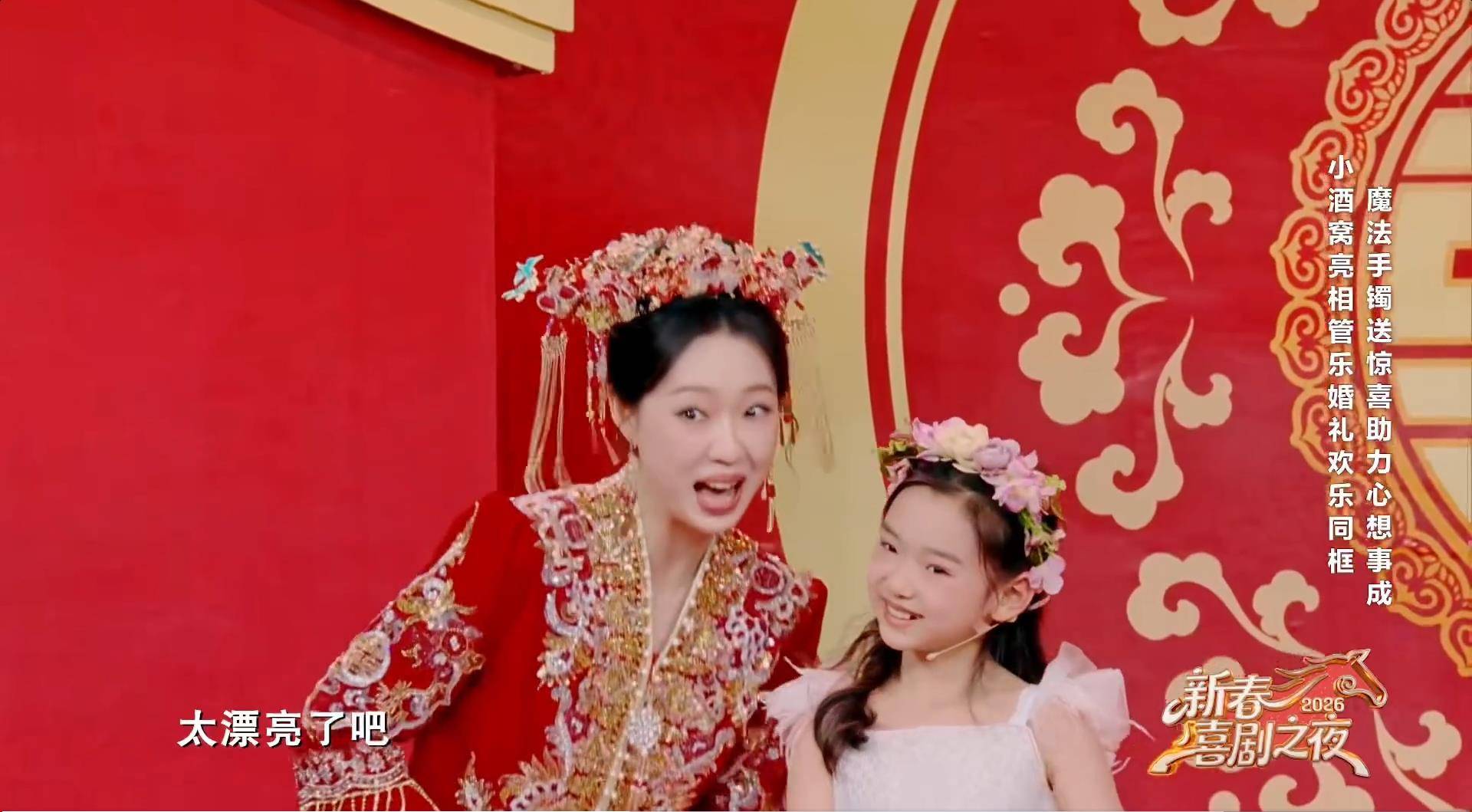 央视2026年《新春喜剧之夜》的一个婚礼小品,意外捧红了一对“跨次元姐妹花”。演员管乐饰演新娘,而她的“小花童”正是董璇的女儿小酒窝(高舒乔)。两人同框的画面,直接让网友炸了锅:这相似度,说是亲姐妹都有人信!