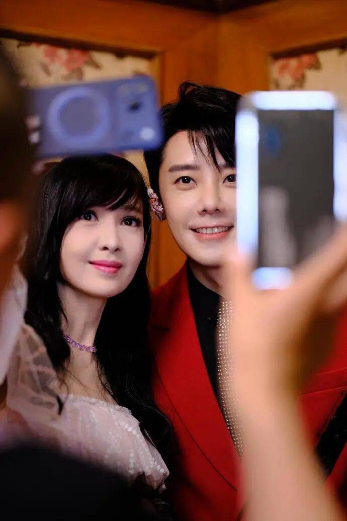 巧合的是,她的休息室与梁家辉、梁咏琪、苏有朋相邻,四人利用彩排间隙匆忙拍摄了合照。