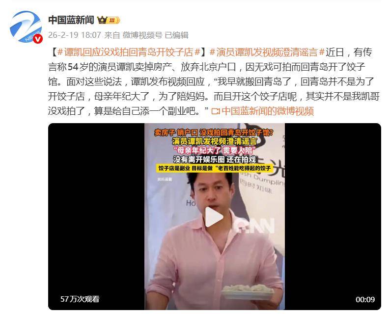 2月19日,54岁的谭凯直接发布视频,对着这些离谱传言来了个正面硬刚。他澄清道,自己早就搬回青岛了,但根本不是为了开店,核心原因只有一个:母亲年纪大了,回去是为了陪妈妈。 至于饺子店,那纯粹是“给自己添一个副业”,跟“没戏拍”八竿子打不着。