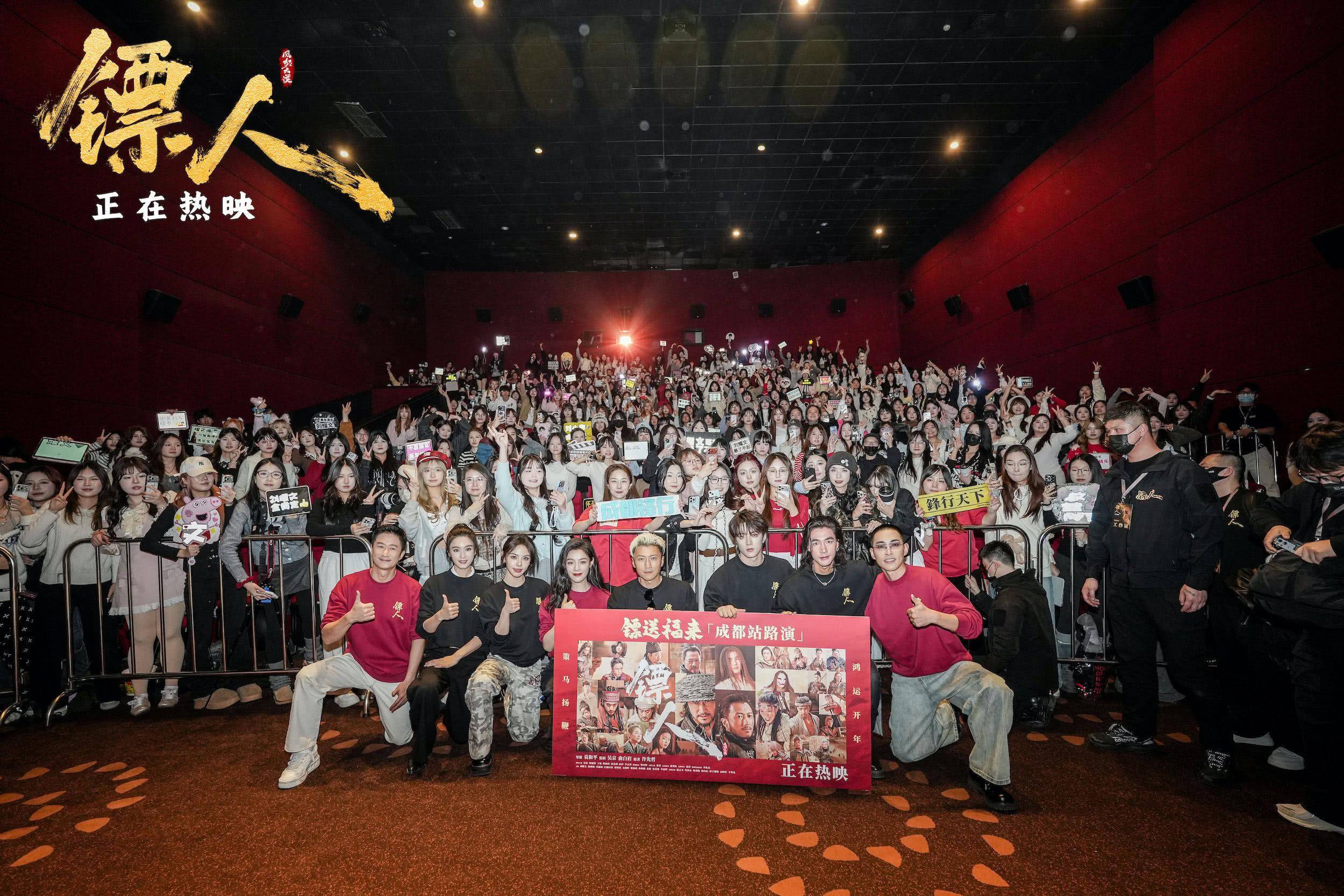 武侠动作大片《镖人》正在热映中。影片自上映以来,凭借硬核带感的动作场面、鲜活立体的角色群像、独具韵味的中式武侠美学,以及一众武侠人倾力集结的满满诚意,收获无数好评,口碑一路“镖”升!昨日,电影《镖人》“镖送福来”主题路演在成都、杭州两地同步火热开启。导演袁和平,监制兼领衔主演吴京,监制兼编剧俞白眉,演员谢霆锋、于适、陈丽君、此沙、李云霄、刘耀文、熊瑾怡、白那日苏、梁壁荧、林秋楠、景瓷、李嘉辉兵分两路,将大漠江湖的热血豪情带进影院,更为新春佳节添上一份独特的“年味”。杭州场路演气氛火热,不少观众看完电影后意犹未尽,当场“催更”导演:“八爷,什么时候拍第二部?”面对观众的热情期待,袁和平导演笑着回应:“只要你们认可,我们就拍!”话音刚落,全场瞬间沸腾,观众们齐声高呼“明天就拍!”,将现场气氛推向高潮。成都场观众同样热情高涨,直呼过瘾:“没想到过年会看到这么精彩的武侠动作片!”“够硬够野也够江湖,刀光之下尽是情义。”现场,主创们更动情感谢“护镖人”,吴京表示:“看到大家那么喜欢《镖人》,特别激动,感谢大家对影片的认可,欢迎大家加入我们的护镖小队。”