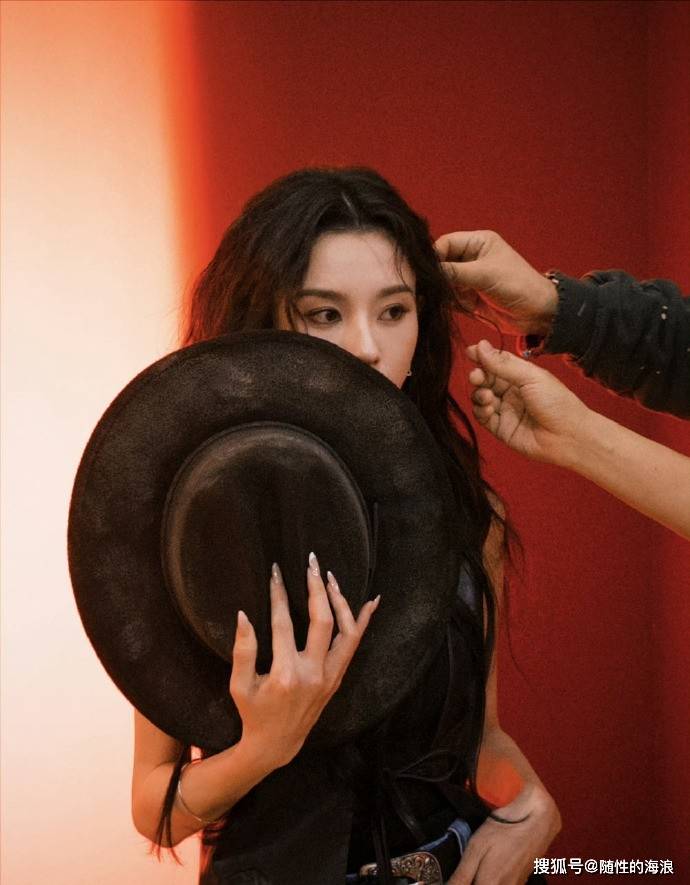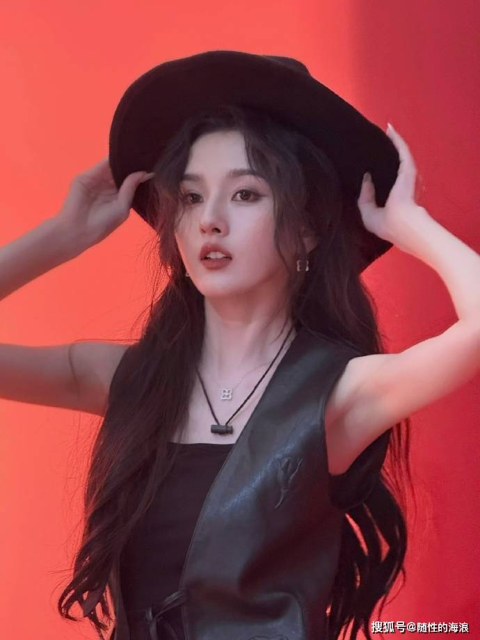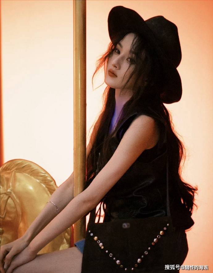 宋祖儿大年初四营业照释出,宽檐黑帽搭配皮质马甲,手提铆钉流苏包,化身又野又飒的复古女郎。