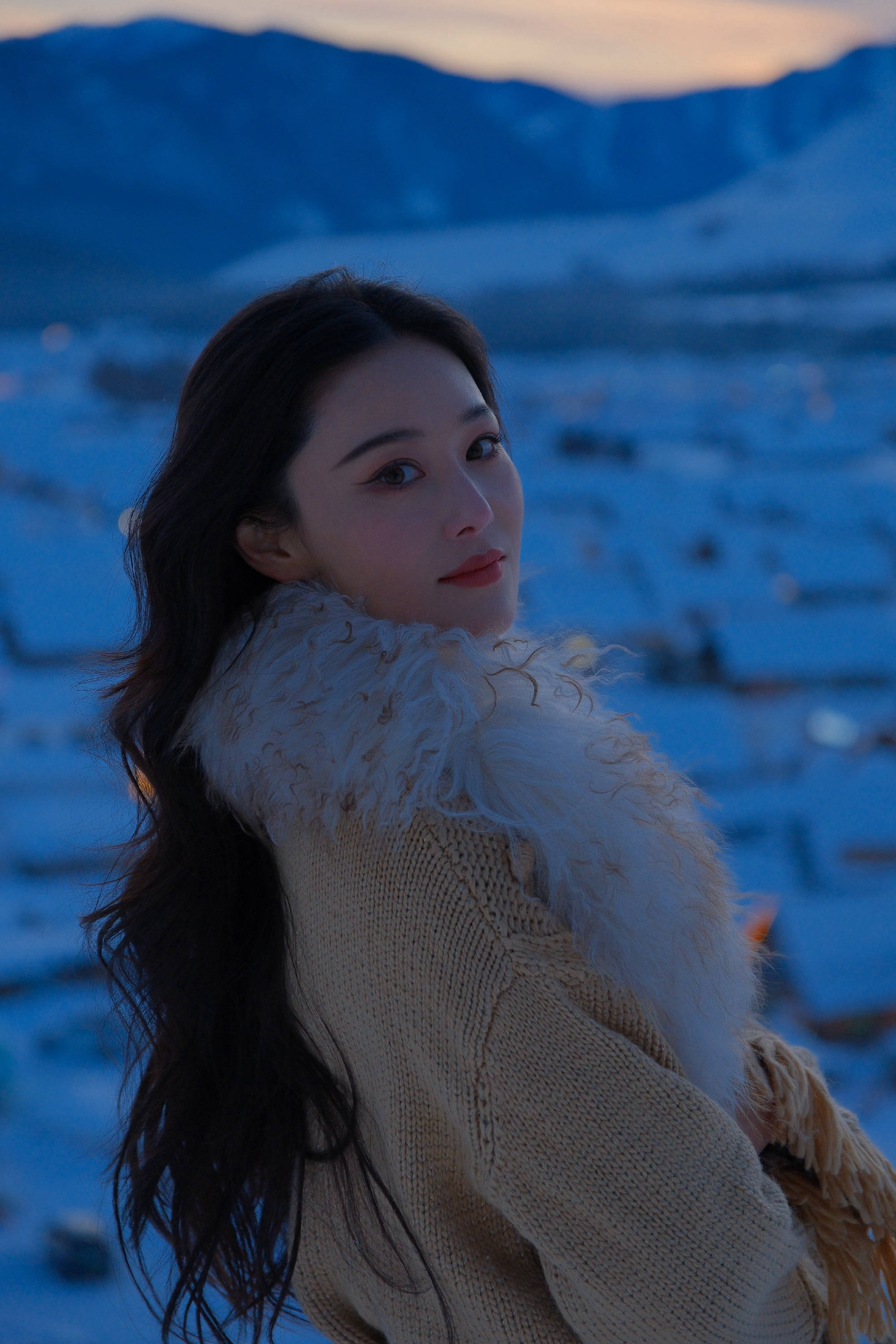 张馨予在户外拍美照,从下午拍到了晚上。