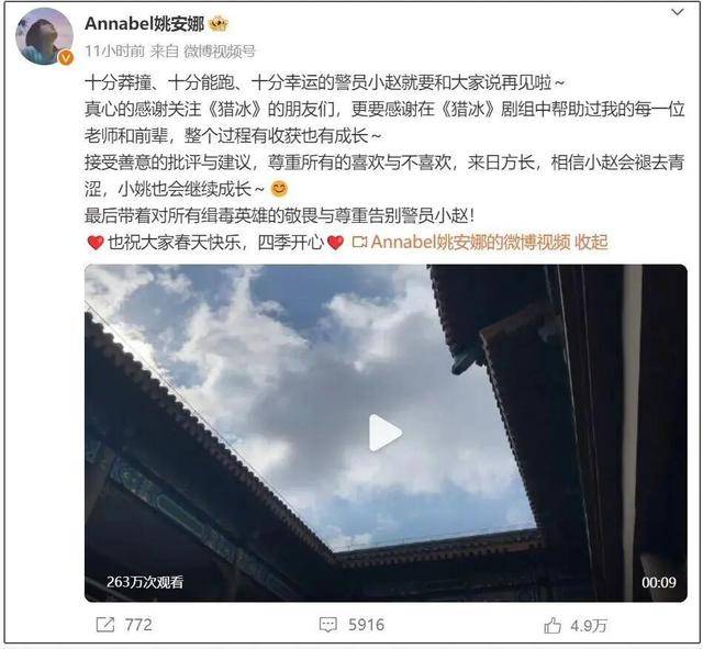 还记得前几年《猎冰》播出,姚安娜演技还很生涩,台词也差,一段持枪搜查的戏,因为动作太僵硬,被网友吐槽成“吃鸡式演技”。当时她曾在微博发文回应演技争议,称接受善意的批评与建议,尊重所有的喜欢与不喜欢,来日方长。