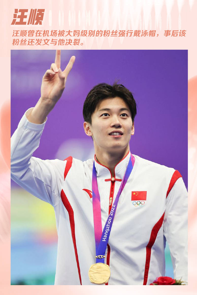 2021年,汪顺的粉丝团负责人在社交平台发文称退出汪顺粉丝团的管理,并表示与汪顺“决裂”,解散了粉丝群。网友一开始还搞不清楚状况,但很快发现是这位粉丝团负责人在公开场合强行给汪顺戴泳帽,这样的极端私生行为引发了现场粉丝的不满,最终该负责人迫于舆论压力选择道歉退出。