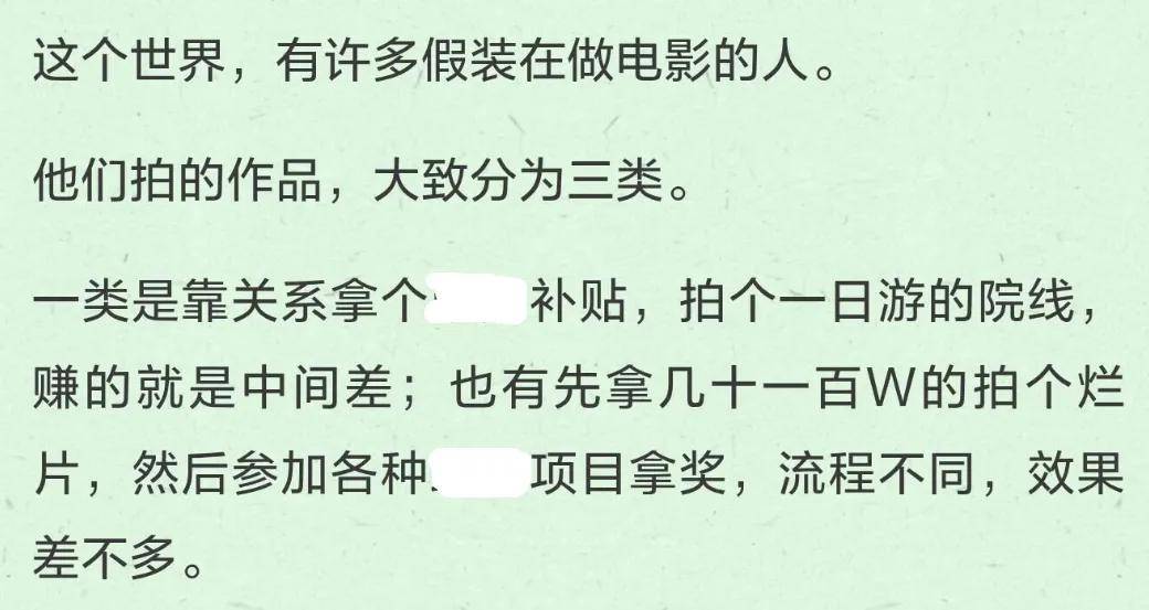 ——有人搞个项目赚补贴;有人骗进来一个是一个;有人拍片买奖给自己贴金。