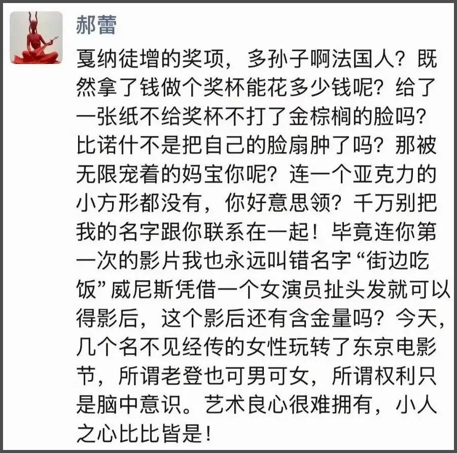 还记得辛芷蕾拿了威尼斯影后之后,郝蕾发朋友圈骂了大半个电影圈,也是和《消失的我》的编剧爆料的戛纳都能买奖对上了。
