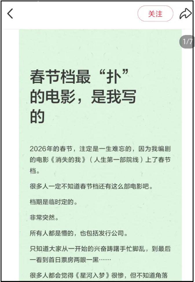 最后还是用《消失的我》编剧一段话来结尾吧,很好解释了为什么2026年一开年就有了最冷春节档。
