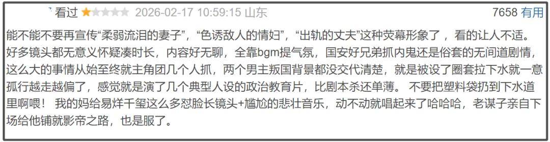 当然了,也有人觉得是导演和剧本不行。不少博主也开始吐槽,张艺谋好像把《惊蛰无声》拍成了《满江红》。