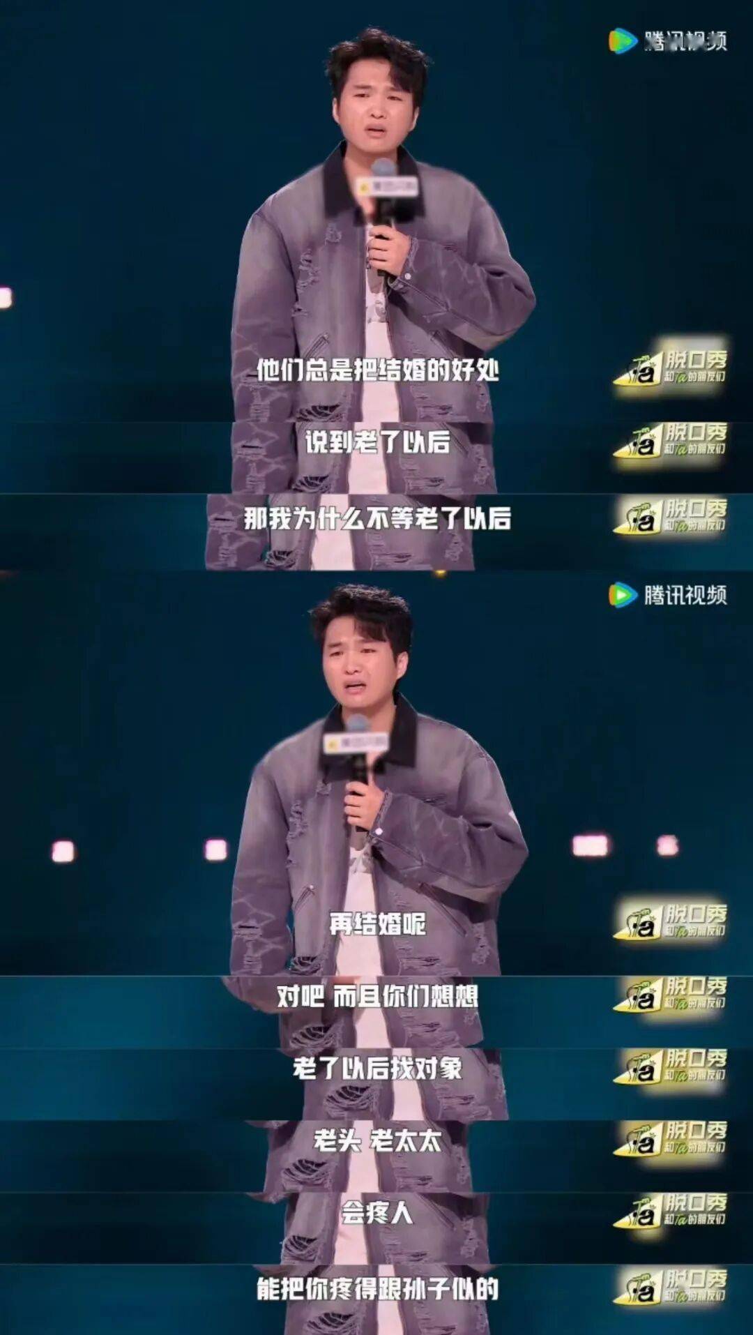 正如脱口秀演员小四爷在舞台上犀利吐槽:“为什么总把结婚的好处说到老年?那我为什么不能老了再结?”