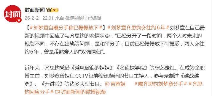 一句35字的微博声明,让主持人齐思钧与交往六年的女友刘梦章的分手消息,瞬间冲上了热搜前排。没有狗血拉扯,没有沉默冷处理,这份被网友称为“教科书级别”的回应,意外地掀起了一场关于“成年人该如何体面告别”的全民讨论。