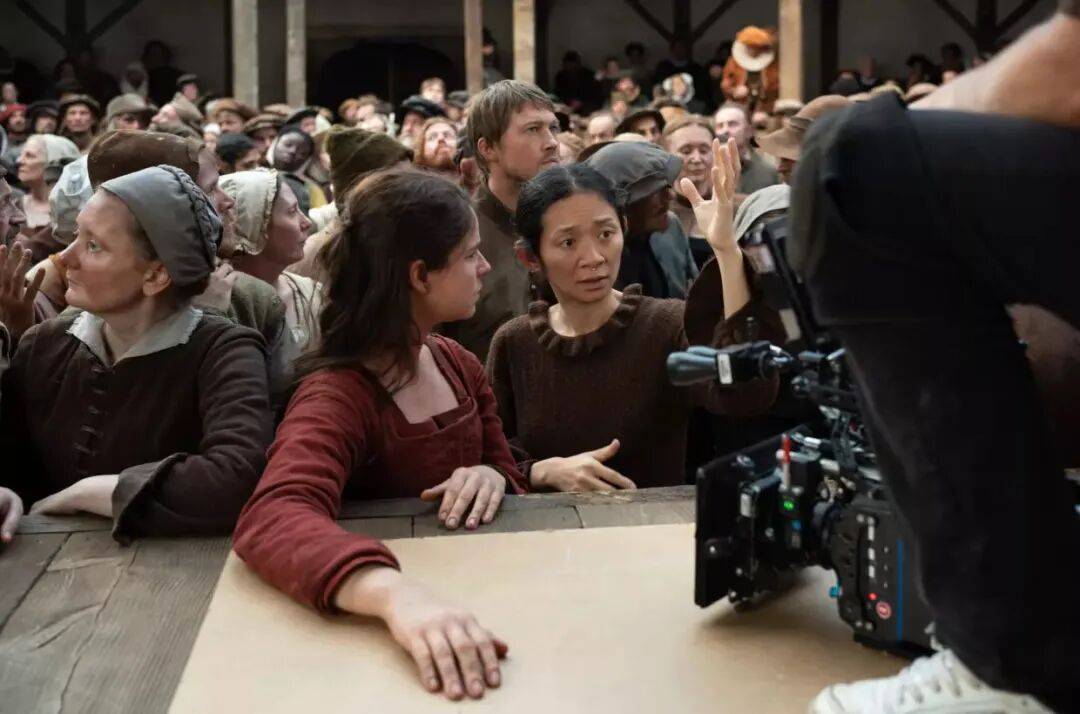 后来在剪辑阶段,片子比现在长很多,有些我特别喜欢的戏是原著里的重头戏。他对我说:“赵婷,我不知道你想怎么处理,但我向你保证,请听我一句劝:你得让我们快点进到环球剧院那场戏。”因为原本中间还有大概15分钟的内容。史蒂文说:“观众等不了那么久。”他信任我的创作过程,所以当他这么说的时候,我照做了。