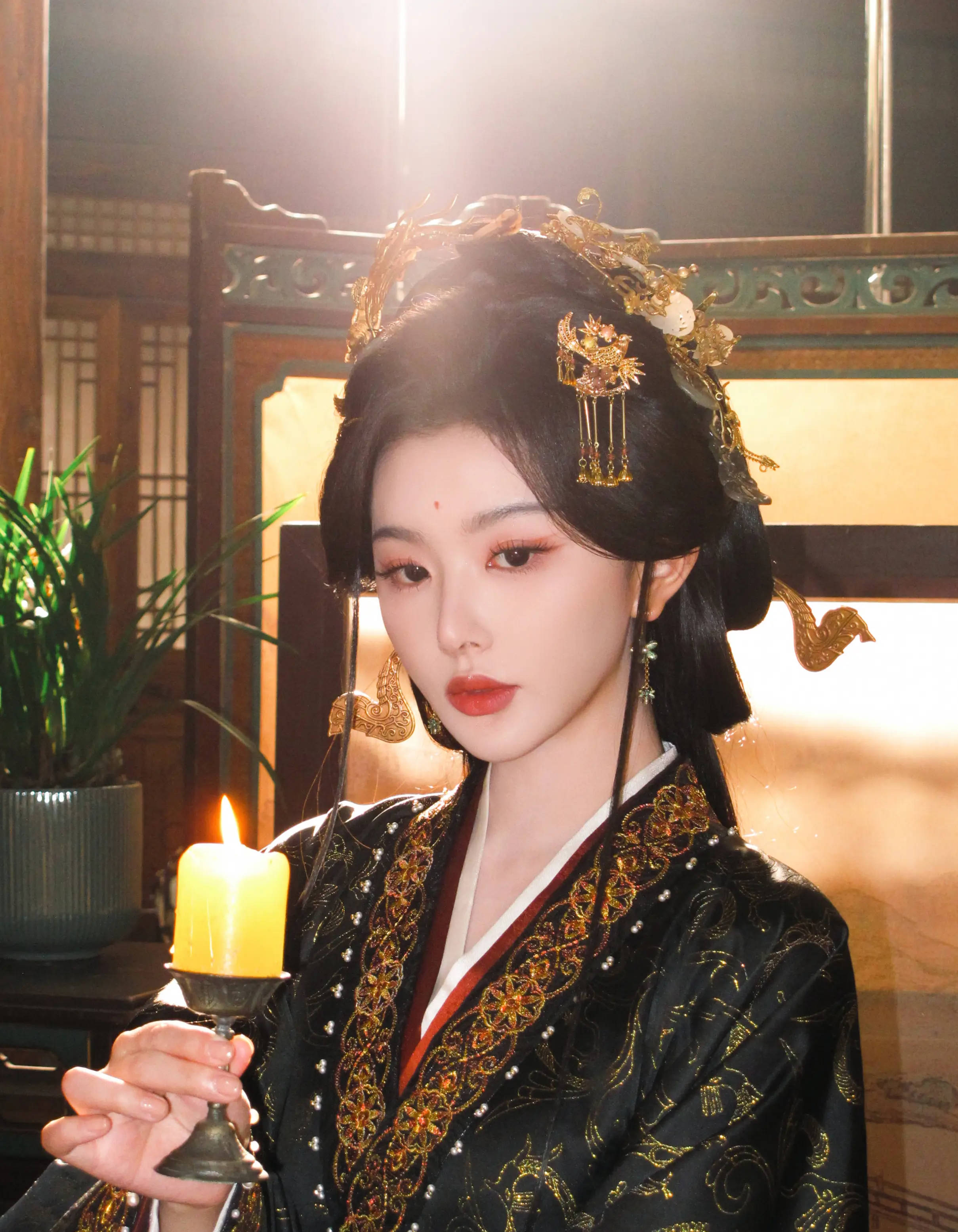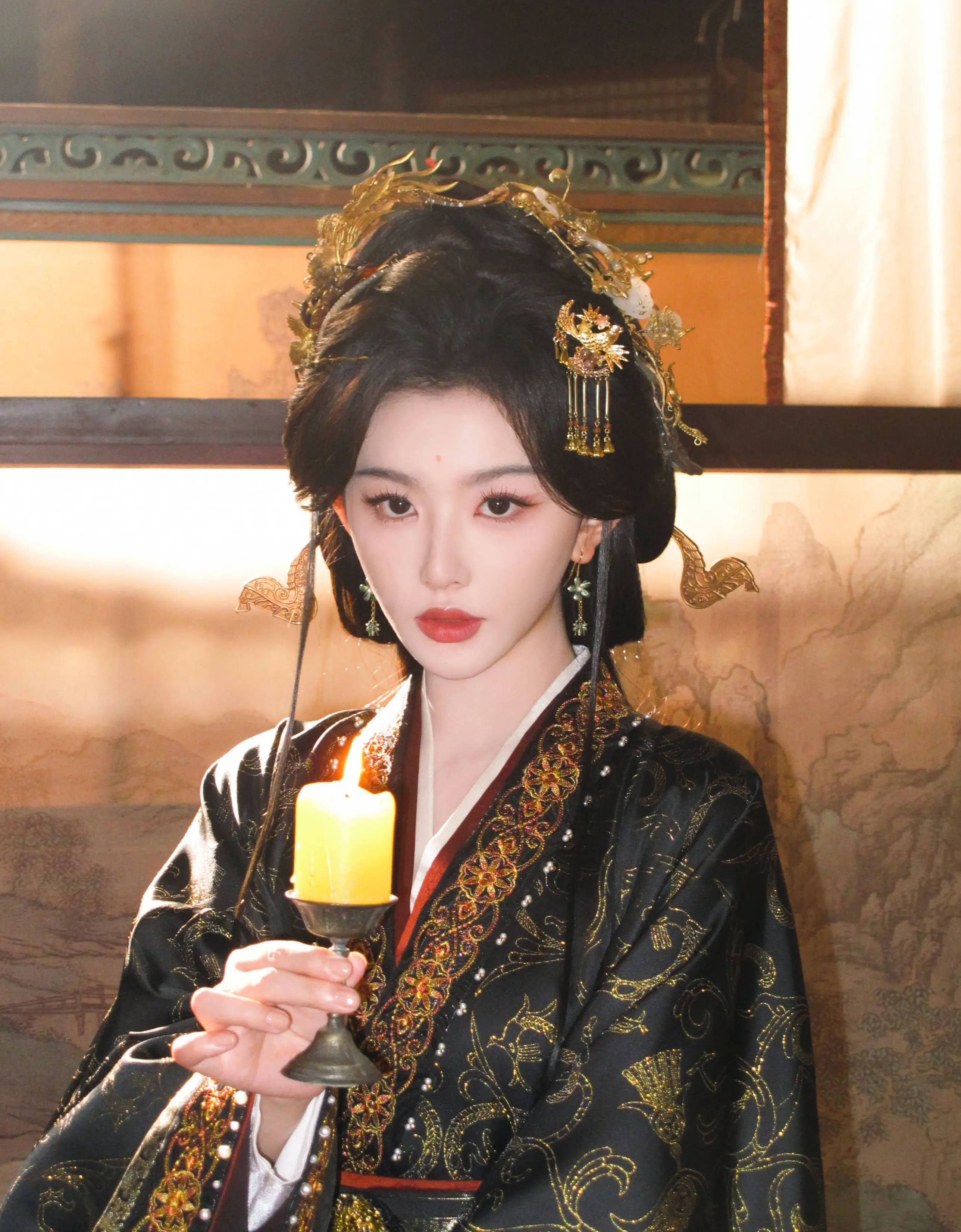 搜狐娱乐讯 2月22日,孔雪儿在社交平台分享一组剧组拍摄花絮,照片里的她一袭黑色汉服,手持蜡烛,气场全开。