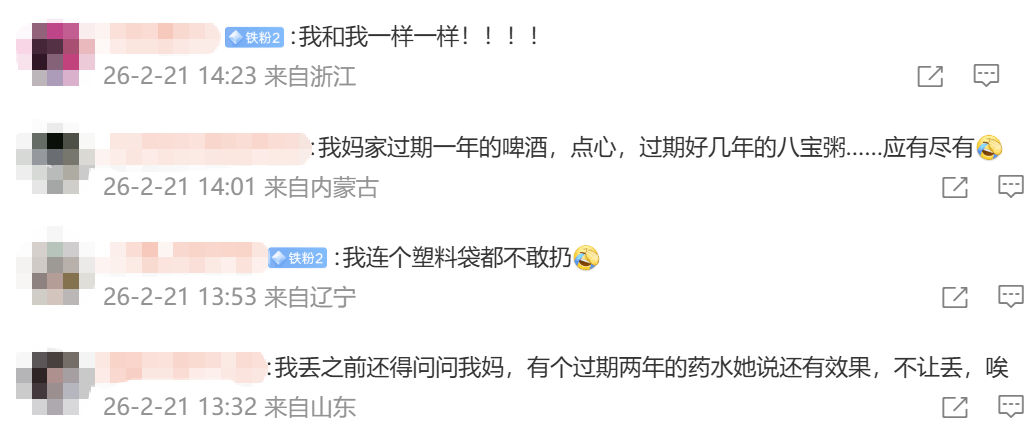 不少网友表示“俺也一样”,父母家里囤了不少过期药品、食物,回家时偷偷扔掉。