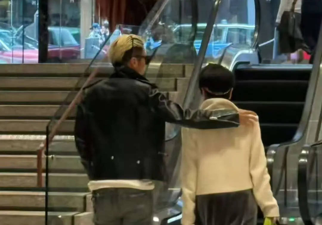谢霆锋轻搭母亲肩膀,商场内并肩而行。
