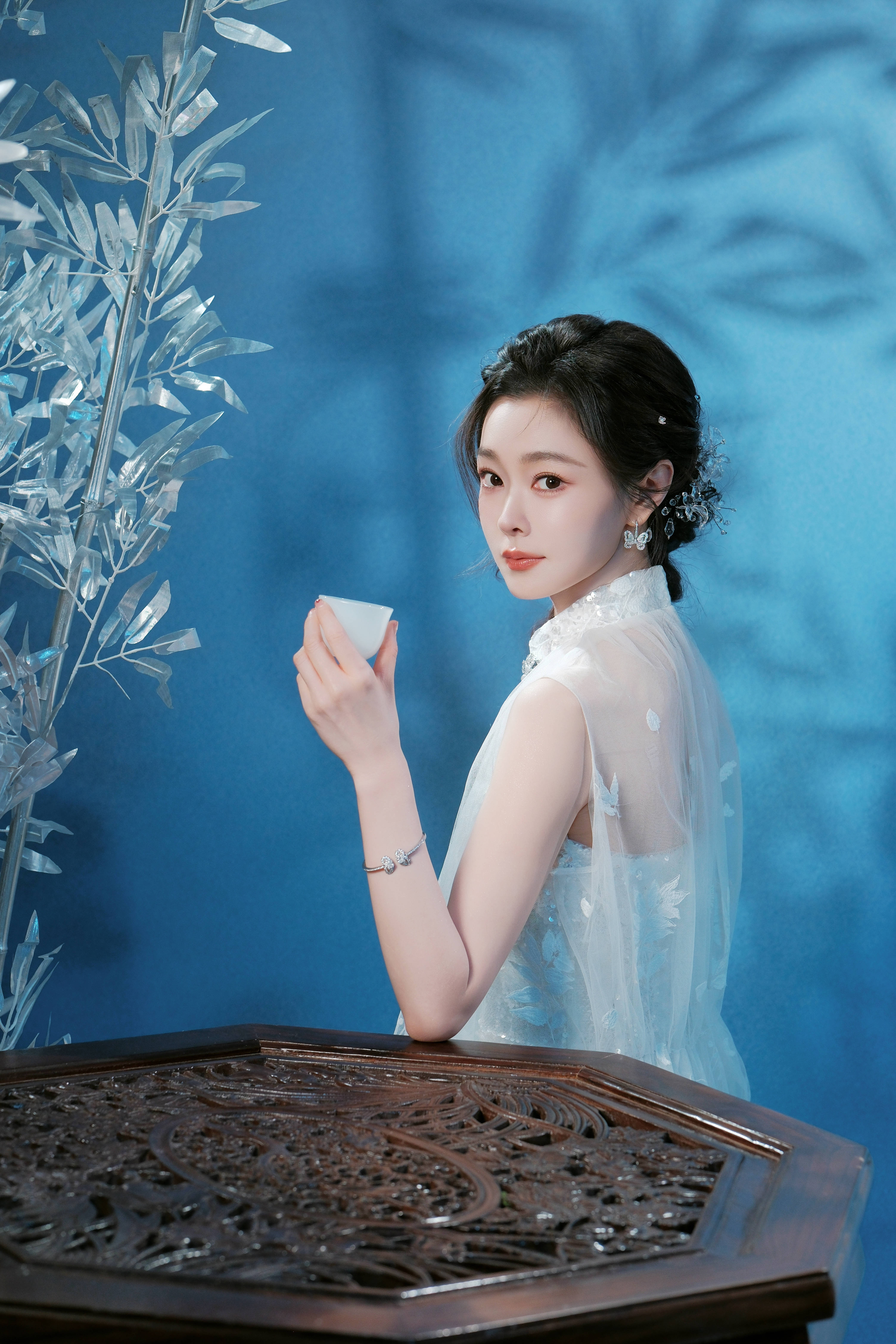 宋轶手拿茶杯回眸。